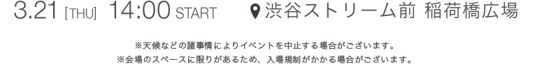 ![3.21 [THU] 14:00 START 渋谷ストリーム *天候などの諸事情によりイベントを中止する場合がございます](img/2019ss/pc/run_catch_date.png)