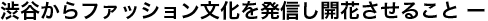 「MADE IN SHIBUYA」をテーマに、新しいファッション文化を発信しつづける街、渋谷の魅力をお伝えします。